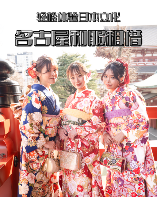 在名古屋体验和服,交通便利,租赁服务完善,可随时预约和服租赁,从发型到穿戴给您最极致的日式体验。