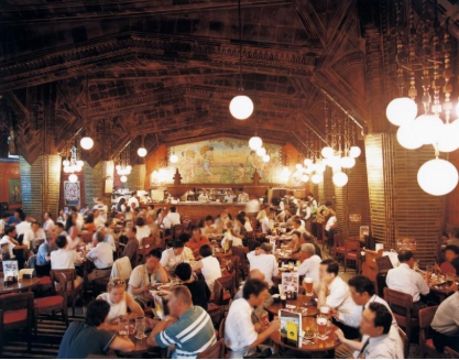 昭和9年(1934年)オープンのライオン銀座7丁目店はビアホールの元祖といわれています。高い天井と豊穣と収穫ををコンセプトに大麦やブドウをモチーフとした装飾が施されており、店内は当時の姿を残した昭和ロマンあふれる内観をしています。日本初のビアホールは「恵比寿ビールBEER HALL」といわれています。他のビアホールが戦災で焼失していくライオン銀座7丁目店は被害を免れたため、日本に残る最古のビアホールなんです。お店の地下には容量1000リットルのビールタンクが6基もあり、新鮮な状態を保つためにタンクや注ぎ口の洗浄に全力を注いでいるそうです。夏になったら浴衣を着て足を運びたいスポットですね。